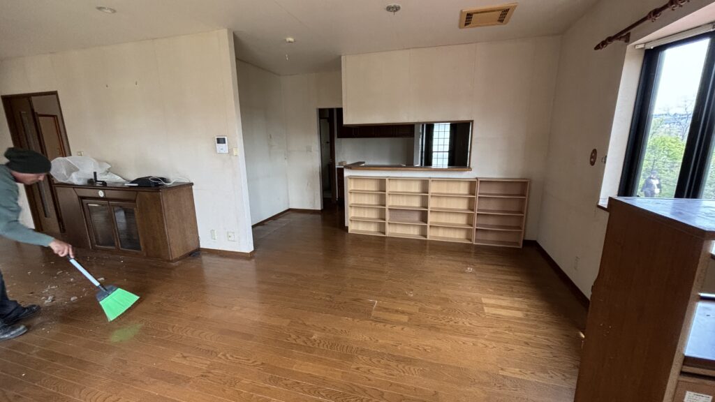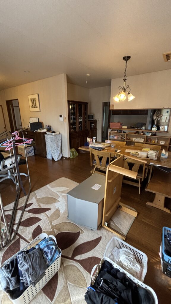 今回は家屋の解体が決まっていたため、木製の家具や建具類は当方で回収せず解体業者に残置する判断をしました。解体業者が家屋と同時に処理できるため、re:Brightが引き取るよりもトータルコストが下がります。「全部持っていくのが親切」ではなく、お客様の費用負担を考えた上での提案です。不動産売却・解体が決まっている現場では、この判断が大きなコスト差になることがあります。