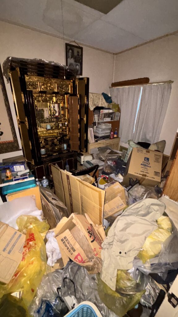 長期間の生活の中で、衛生面において通常とは異なる状態の廃棄物が多数見受けられました。適切な処理と清掃を丁寧に行い、安全・衛生的な環境での作業を徹底しました。こうした特殊な状況にも、経験を積んだスタッフが対応いたします。